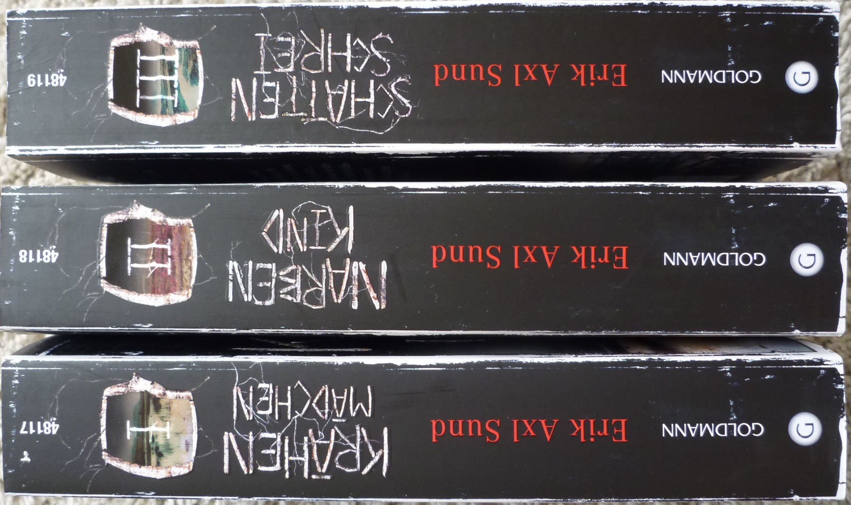 Doch von einer solchen Gefahr sind die Titel „Krähenmädchen“, „Narbenkind“ und „Schattenschrei“ weit entfernt. Ihnen kommt zugute, dass bereits vor der Veröffentlichung des ersten Bandes feststand, dass die „Victoria Bergman“-Geschichten in einer Trilogie erzählt werden. Diese Kenntnis erlaubt es dem Goldmann Verlag ein sehr schlüssiges Gesamtkonzept zu erstellen. Gerade die Nummerierung kommt bei vielen Serientiteln zu kurz. Aus diesem Grund bin ich sehr begeistert von der Nummerierung der Bücher am Kopf des Buchrückens, der keine Verwechslung der Titel untereinander erlaubt.