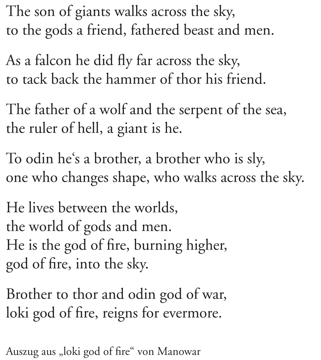 In Loki steckt so viel mystisches Potential, dass auch die US-amerikanischen Heavy Metal Ikonen Manowar ihm einen Song gewidmet haben, dessen Text Loki nicht treffender beschreiben könnte: