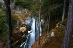 Heute bekommen wir zu spüren, dass der Wanderführer – wie könnte es anders sein – von einer aktiven Wanderfamilie geschrieben wurde. Gerade die 15 kg Gepäck erschweren auf den felsigen Pfad den 350 Meter hohen Anstieg zum oberen Wasserfall. Erschwerend kommt leichter Regen hinzu, der uns zeitweise zum Innehalten unter unseren Regenschirmen zwingt.