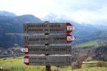 Am Karfreitag wollen wir zum Barbianer Wasserfall aufsteigen. 350 Höhenmeter sind dazu über schmale und teilweise felsige Wegstücke zu meistern. Durch die Baustelle und die werktags gesperrte Straße zwischen Saubach und Barbian, lassen wir uns bei der Anfahrt verwirren und parken unser Auto aus Versehen in Saubach, anstatt in Barbian. Das fällt uns zunächst gar nicht auf, denn auch hier steht eine Kirche, an der wir unsere Route wie im Wanderführer beschrieben starten. Auch ein Haus mit dem Namen „Pennhof“ lassen wir links liegen. Doch irgendwie sind auf der Wanderkarte, die für jeden Tourvorschlag abgedruckt ist, wesentlich mehr Häuser und Straßen verzeichnet, als wir sehen können. Wir zweifeln bald daran, dass wir auf der richtigen Route gehen, vor allem als wir auf einmal auf einem Privatweg stehen und nicht mehr weiterkommen. Wir drehen um und laufen zurück zum Auto. Dabei treffen wir auf andere Wanderer, die wir einfach fragen, woher sie denn gerade kommen. Viele Möglichkeiten kann es hier direkt am Berg schließlich nicht geben. Wie vermutet kommt die Gruppe gerade vom Wasserfall zurück und klärt uns über unseren Fehler auf. Wir steigen ins Auto und fahren die restlichen 3 km bis nach Barbian weiter. Dort finden wir uns mit der Beschreibung sofort zurecht. Wir laufen die Strecke entgegengesetzt der im Wanderführer beschriebenen Route. Das liegt daran, dass wir das steile und felsige Stück zwischen dem unteren und oberen Wasserfall hoch-, nicht hinuntersteigen möchten. Das ist ungefährlicher mit der Kraxe auf dem Rücken.